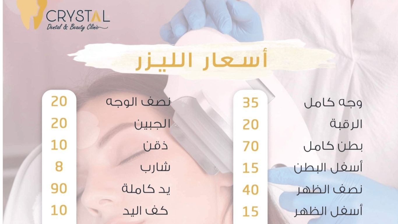 لقد ذهبت إلى مركز كريستال للتجميل منذ سنوات وأنا معجب دائمًا بمستوى احترافهم وخبرتهم. أوصي بشدة بخدماتهم لأي شخص يبحث عن رعاية تجميل عالية الجودة.